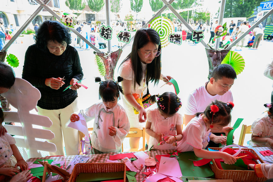 活動現(xiàn)場,家長與幼兒共同感受六一兒童節(jié)的歡樂氛圍與端午節(jié)的民俗魅力。