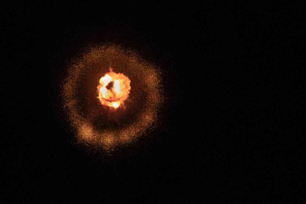 3月7日,在以色列北部海法,以軍防空攔截彈擊中導(dǎo)彈。新華社/基尼圖片社