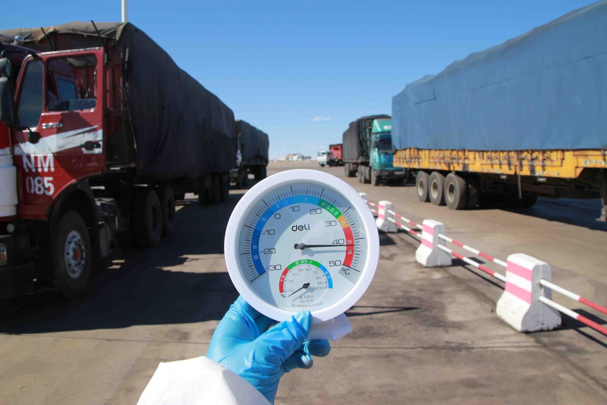 6月11日,內(nèi)蒙古自治區(qū)阿拉善盟額濟(jì)納旗策口岸地氣溫持續(xù)升高,策克口岸距離額濟(jì)納旗近70余公里,地處戈壁深處,全年干旱少雨干燥的氣候、持續(xù)增長(zhǎng)的氣溫,為抗擊疫情、出入境查驗(yàn)等工作都帶來(lái)了不小的影響。