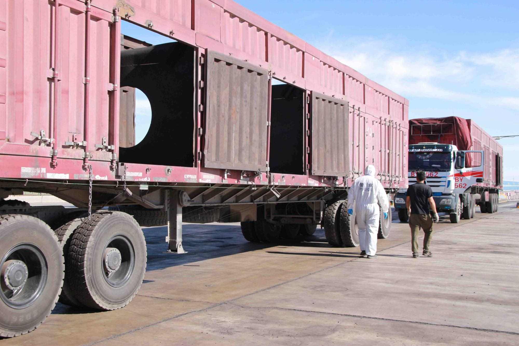 近期策克口岸的溫度持續(xù)增加至30攝氏度以上,而在通行的重型卡車,溫度還要更高,下午15點(diǎn)溫度計(jì)地表溫度測(cè)量最高可達(dá)40攝氏度。這無(wú)疑讓的查驗(yàn)工作更為繁重。更重要的是,由于疫情影響每名民警在查驗(yàn)期間都要穿上防護(hù)服,在高溫下,由于防護(hù)服是密閉的,防護(hù)服里仿佛成了蒸箱,用不了十分鐘,民警就會(huì)汗流浹背,防護(hù)服黏在身上又粘又癢,一班勤務(wù)近2個(gè)小時(shí),必須要等過(guò)了勤務(wù)才能休息,而民警還要完成車體的查驗(yàn)工作,包括工具箱、馬槽等處,絲毫不敢馬虎。