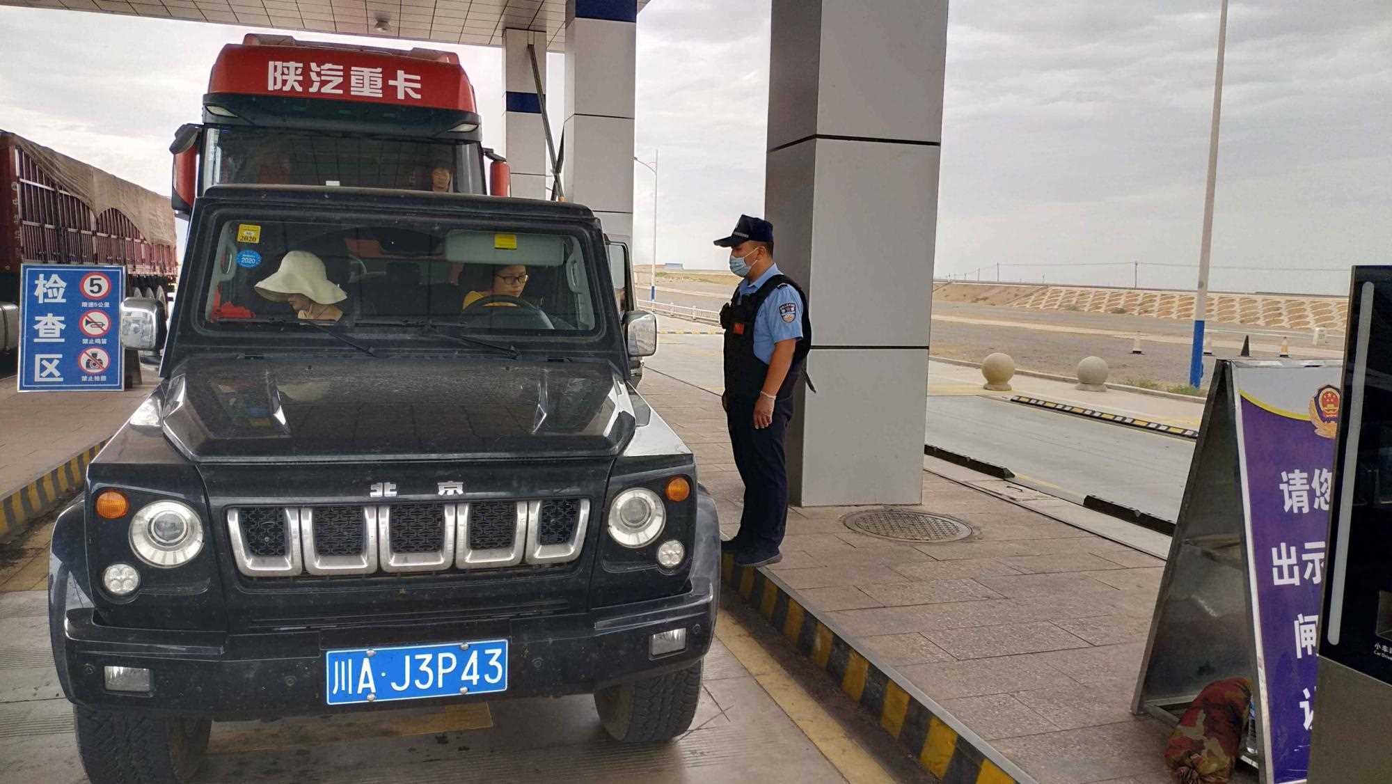 “您好,請出示駕駛證、行駛證和身份證……”8月4日,艷陽當(dāng)空,高溫持續(xù),在內(nèi)蒙古自治區(qū)阿拉善右旗查干通格公安檢查站,執(zhí)勤民警全副武裝對過往車輛人員物品等的安全盤查沒有一絲松懈。