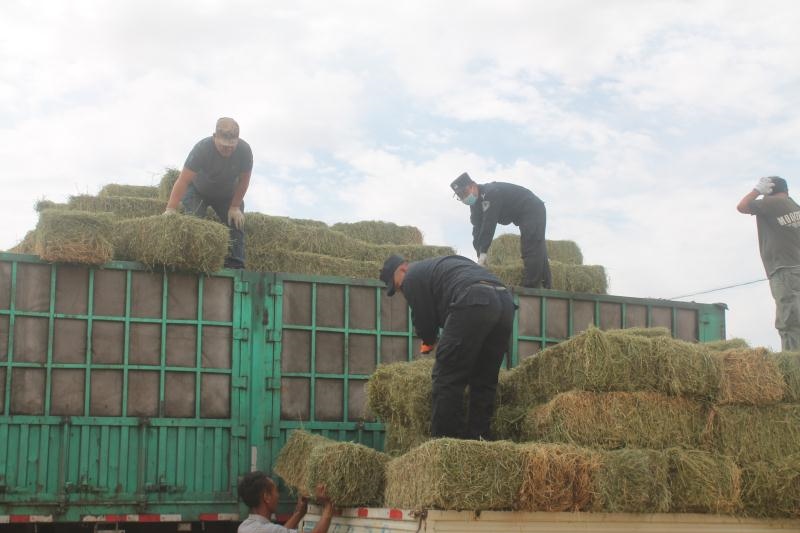 今年以來,內(nèi)蒙古自治區(qū)西部的阿拉善盟持續(xù)高溫少雨,阿拉善左旗蘇宏圖地區(qū)草場退化嚴(yán)重,駝、羊等牲畜草料嚴(yán)重匱乏,影響了牧民正常生產(chǎn)生活。8月9日,從甘肅省購置的草料順利抵達(dá)蘇宏圖,但是由于缺少精壯勞動力,牧民們望著一車車救命的草料卻犯起了難。正當(dāng)大家一籌莫展之際,派出所聞訊組織6名民警組成黨員先鋒隊(duì)投入勞動,經(jīng)過3天的努力,成功將70噸1200捆草料分裝到牧民車上,受到群眾的一致好評。(牛鑫 肖鵬 梁鎮(zhèn))