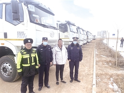 12月14日,阿拉善右旗公安局查干通格公安檢查站民警在戈壁路上,查處偽造超限運輸車輛通行證的重型貨車17臺。