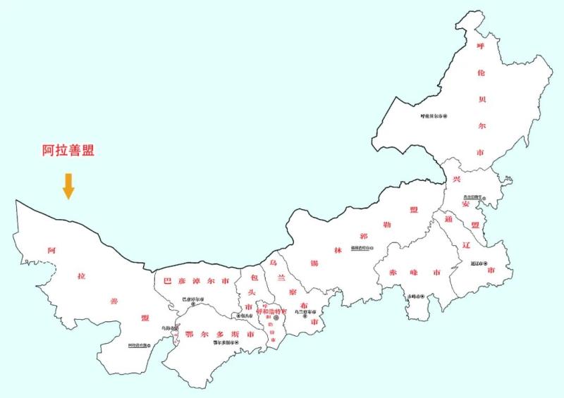 阿拉善盟地處內(nèi)蒙古自治區(qū)最西部,有“五彩斑斕之地”的美譽(yù),下轄3個邊境旗及策克、烏力吉兩個邊境口岸,邊境線全長735公里。世界三大胡楊林之一的額濟(jì)納胡楊林、世界三大載人航天中心之一的東風(fēng)航天城(酒泉衛(wèi)星發(fā)射中心)坐落于此。額濟(jì)納地區(qū)出土的居延漢簡,被譽(yù)為20世紀(jì)初中國古文獻(xiàn)四大發(fā)現(xiàn)之一。