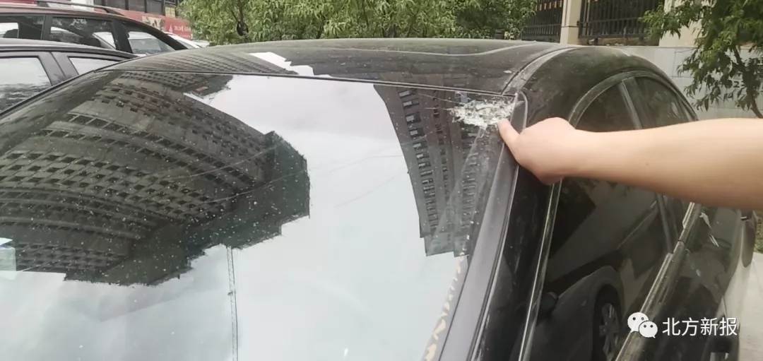 據(jù)車主段先生講,他的長(zhǎng)安福特汽車前風(fēng)擋玻璃上有一處直徑10厘米左右的放射性裂痕,車身也是傷痕累累。被砸傷的不僅是車輛,當(dāng)時(shí)有一位路人也被高空墜物砸中腿部,好在傷的不厲害,只是破了皮。