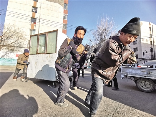 “由于您的車長期占用小區(qū)公共資源,給小區(qū)居民出行帶來不便。請您看到通知后,在3日內(nèi)自行將您的車挪出小區(qū),如逾期未挪走,我們將您的車做無主僵尸車報相關(guān)單位統(tǒng)一處理”。1月15日,黃河西路街道友誼19#四社區(qū)將通知貼在一輛鐵皮車輛醒目的位置,一直無人將車輛挪走。圖為1月18日,友誼19#四社區(qū)的工作人員將該“僵尸車”清走時,車主突然現(xiàn)身。社區(qū)工作人員耐心細致地與該車主交流后,車主表示配合。文/圖 李強