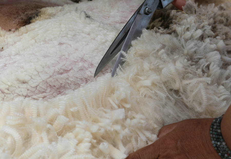 在同步舉行的剪羊毛大賽中,參賽選手們用剪刀和電動剪毛機(jī),在細(xì)毛羊身上翻飛操作,牧民們熟練的身手和精湛的技藝,使一只只羊片刻之間“脫胎換骨”。