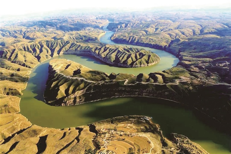 一瀉千里奔騰向前的黃河,在即將告別鄂爾多斯高原之際忽然變得戀戀不舍,繞著準(zhǔn)格爾大峽谷迂回徘徊,留下了兩個(gè)接近360度的大轉(zhuǎn)彎。青山不墨,綠水無語,卻肩并肩勾勒出流傳千秋的畫卷——“太極灣”。