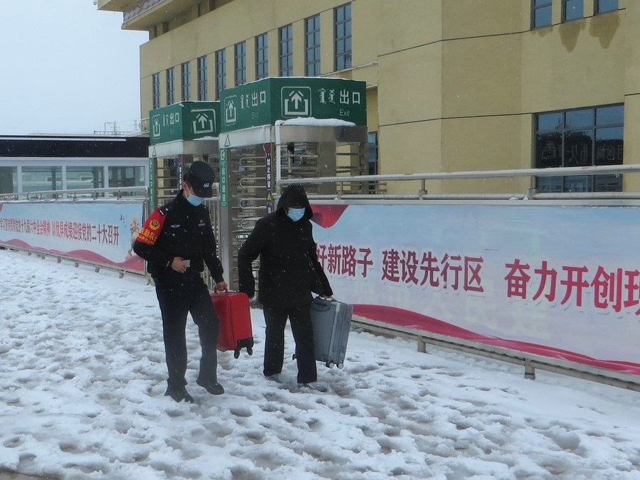 東勝東車站派出所以雪為令,迅速啟動(dòng)應(yīng)急預(yù)案,積極采取有效措施,解決安全發(fā)送旅客、線路安全暢通等問題,切實(shí)保障旅客群眾生命安全和鐵路運(yùn)輸生產(chǎn)安全。(王鵬)