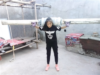 用工地上撿來(lái)的木頭樁和繩子制作的簡(jiǎn)易牽引機(jī),加了墊子的木凳做跳躍訓(xùn)練,用木頭和海綿做的啞鈴……走進(jìn)呼和浩特市土默特左旗察素齊鎮(zhèn)鄭國(guó)花的家里,由父親耗時(shí)半個(gè)月打造的簡(jiǎn)易健身房就是鄭國(guó)花每天訓(xùn)練體能的地方。鄭國(guó)花在土默特左旗第一中學(xué)高一就讀,每天凌晨4點(diǎn)多,父女二人就準(zhǔn)時(shí)出現(xiàn)在察素齊鎮(zhèn)街頭的柏油路和體育場(chǎng)里。從小學(xué)六年級(jí)到高一,訓(xùn)練從不懈怠,一堅(jiān)持就是5年。“其實(shí)最初讓孩子練習(xí)中長(zhǎng)跑,主要是為了鍛煉孩子的身體。女兒4個(gè)月大的時(shí)候,她媽媽就離開了,我一直又當(dāng)?shù)之?dāng)媽把她拉扯大,但這娃娃身體一直不好,不怎么吃飯,身體十分瘦弱,直到上小學(xué)六年級(jí)的時(shí)候,連一碗飯都吃不進(jìn)去。我一看再這么下去身體指定是要垮掉的,就想著讓她練習(xí)跑步,能多吃點(diǎn)飯。因?yàn)槲沂擒娙顺錾?,以前也是運(yùn)動(dòng)員,和女兒商量后,她也同意了,我們就開始跑步。第一個(gè)月,她還追不上我,但飯量確實(shí)見長(zhǎng),到了第二個(gè)月,我就追不上她了,我開始騎著自行車陪她跑,再后來(lái)自行車追不上了,我就騎了一輛三輪車,三輪車也不行了,干脆買了一輛摩托車,這么多年從沒間斷過(guò)?!?月19日,鄭龍?jiān)诮邮苡浾卟稍L時(shí)表示,對(duì)于女兒,她最大的希望是女兒健健康康的,以后能進(jìn)入北京體育大學(xué),將來(lái)能進(jìn)入國(guó)家隊(duì),為國(guó)爭(zhēng)光。