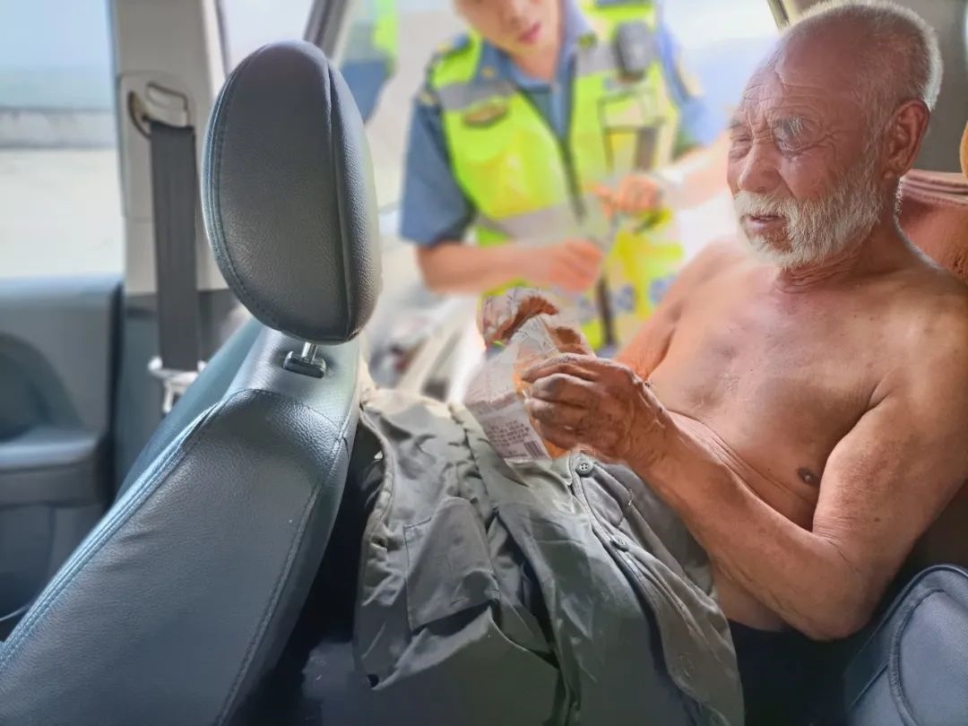 7月27日10時10分許,內(nèi)蒙古自治區(qū)公路路政執(zhí)法監(jiān)察總隊呼和浩特支隊第三大隊的李超和張鵬飛在呼北高速公路巡查過程中,發(fā)現(xiàn)一位老人光著膀子獨自走在高速公路中間,快速行駛的車輛不時從老人身邊呼嘯而過,稍有不慎就可能引發(fā)重大道路交通事故。
