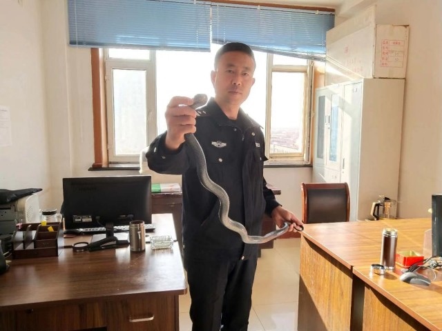 為了防止它再次出逃,民警立即將它抓獲,并送往呼和浩特市野生動物園救助中心進行收治。它將在這里過冬,等天氣轉(zhuǎn)暖后,由工作人員放回自然。據(jù)介紹,黑王錦蛇,體大兇猛,卻是典型的無毒蛇,在內(nèi)蒙古較為少見,屬于國家“三有”保護野生動物。(記者 劉惠)