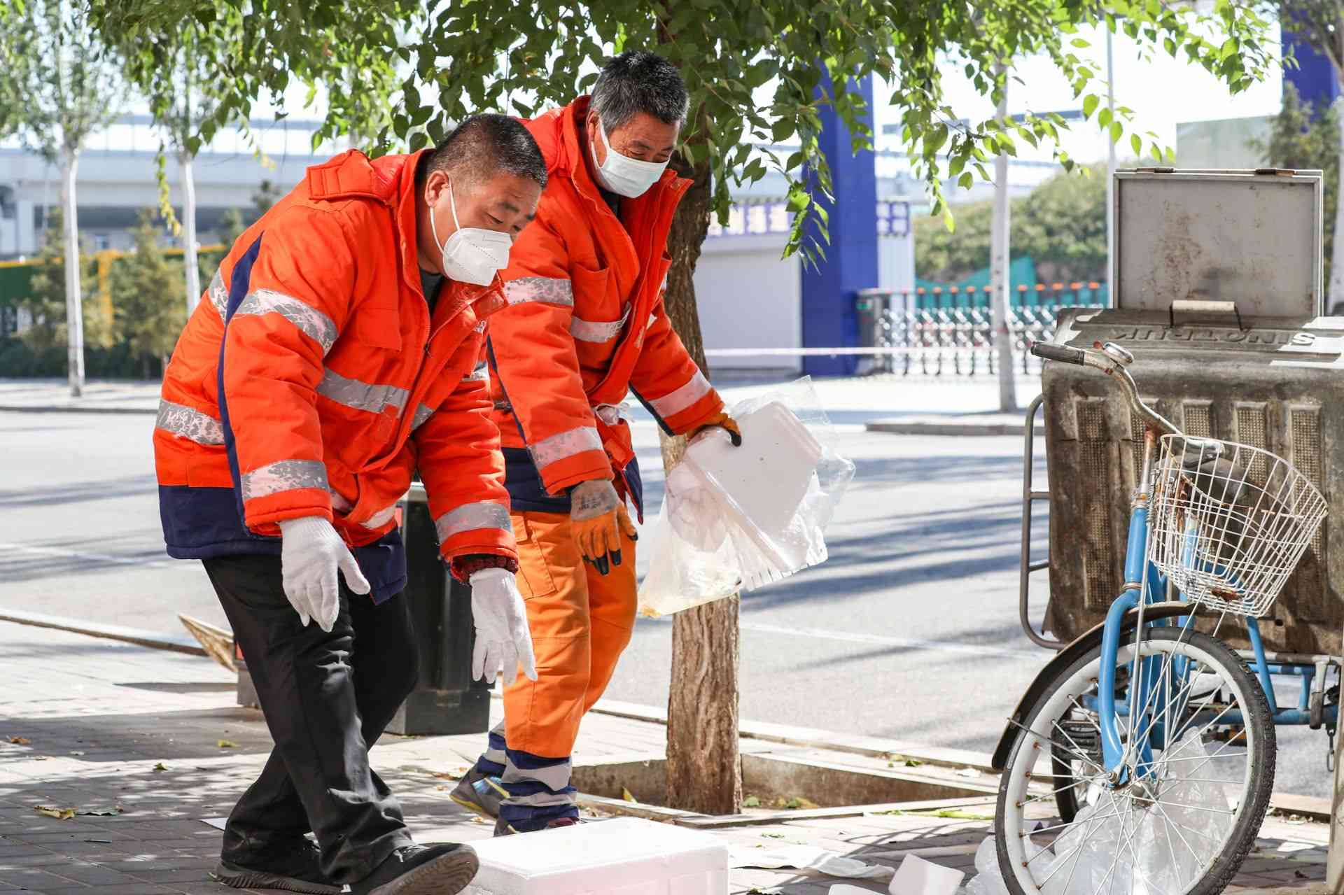 10月18日,呼和浩特市賽罕區(qū)環(huán)衛(wèi)工作人員正在進(jìn)行清掃清理工作。為切實(shí)做好疫情防控期間呼和浩特市生活垃圾清運(yùn)工作,讓城市清潔無死角,環(huán)衛(wèi)部門工作人員堅(jiān)守在城市街頭、社區(qū)等工作崗位,在做好自身防護(hù)的同時(shí),維護(hù)著城市的清潔環(huán)境。攝影/草原全媒·正北方網(wǎng)首席記者 牛天甲