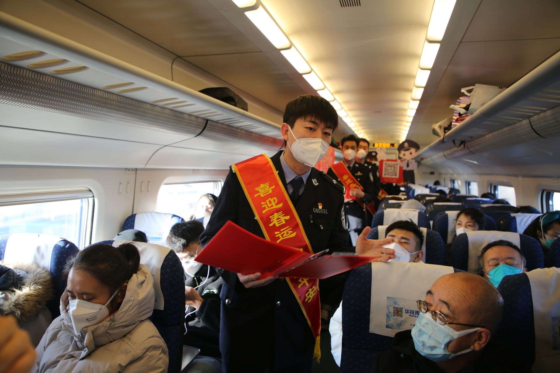同時,呼和浩特鐵路警方組織管內(nèi)各所隊、文藝小分隊進村入戶、登乘列車,集中開展形式多樣、內(nèi)容豐富的主題宣傳活動,通過懸掛橫幅、擺放展板、現(xiàn)場答疑、發(fā)放宣傳手冊、贈送“?!弊值确绞剑蜻^往旅客講解出行安全常識,提升旅客群眾的安全意識。
