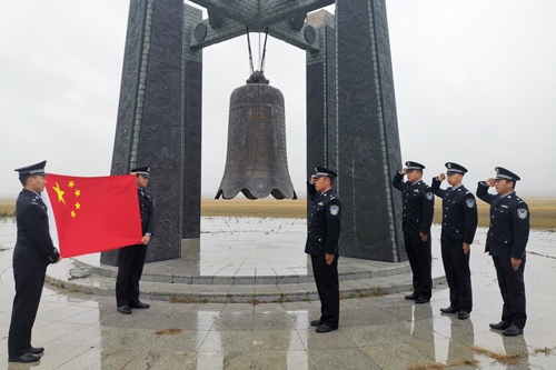 9月18日上午,內(nèi)蒙古諾門罕布日德邊境派出所在諾門罕戰(zhàn)役紀念廣場和平大鐘前開展“重溫人民警察誓詞”主題活動,紀念“九一八”事件89周年。