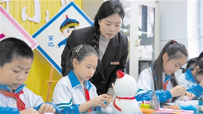 “全國大眾冰雪季給我們帶來了一個絕佳的主題切入點,讓傳統(tǒng)的羊毛氈工藝與冰雪運動相互交融碰撞,孩子們在戳刺羊毛的過程中,對冰雪文化有了更深層次的理解,也對非遺技藝充滿敬意?!苯】到中W(xué)美術(shù)教師山丹邊說邊悉心指導(dǎo)學(xué)生把握形狀、色彩與紋理,幫助他們將創(chuàng)意更好地在羊毛氈作品中呈現(xiàn)?!拔以谥谱鬟@個滑雪小人的時候,就一直在想自己滑雪時的快樂,每戳一針都很用心,希望能把這份快樂表現(xiàn)在作品里。”四年二班學(xué)生宋子祺說。