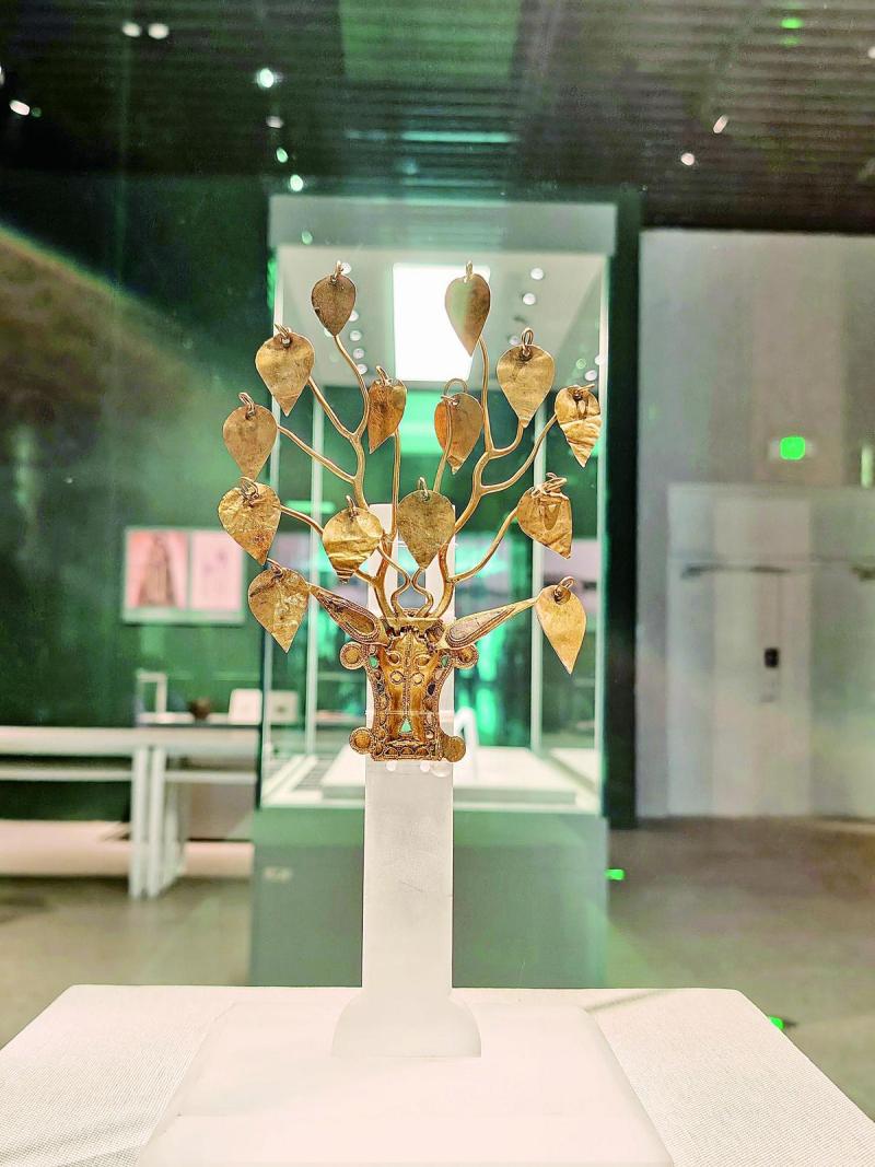 展覽中,呼倫貝爾的嘎仙洞遺址出土的石鏃、骨錐等,見證了拓跋鮮卑早期的生活遺跡;內(nèi)蒙古博物院藏的鹿角金步搖冠精美華麗,鹿頭面部鑲嵌有珠飾,鹿角支叉上所掛的桃形金葉均可搖動(dòng),象征著草原民族對于鹿的崇拜;釉陶馬、青釉武士俑,展示了拓跋鮮卑強(qiáng)大的騎兵力量;從大同出土的彩繪陶女舞俑到洛陽出土的彩繪陶伎樂俑,體現(xiàn)了北魏在漢化改革前后的服飾變化、音樂舞蹈和社會生活。