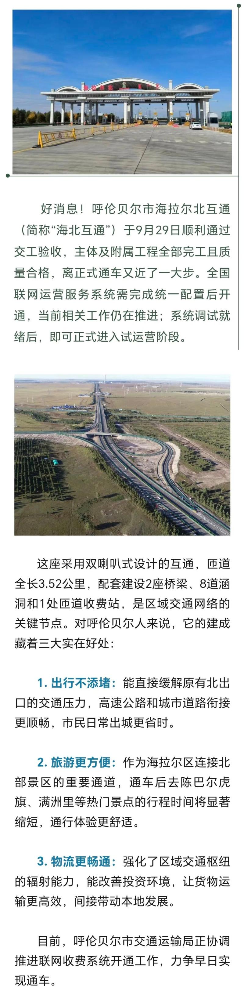 “海北互通”即將進(jìn)入試運(yùn)營(yíng)階段!去滿洲里和陳巴爾虎旗等地行程縮短
