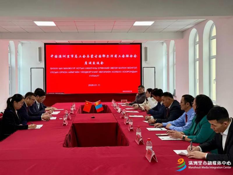 1月11日,滿洲里市總工會與蒙古國鄂爾渾省工會聯(lián)合會座談交流會舉行。雙方圍繞工會工作經(jīng)驗互鑒、跨境職工服務合作等議題深入交流,共話友誼、共謀發(fā)展。