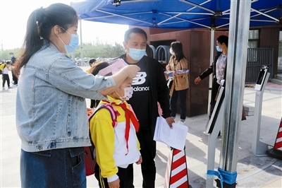“等了這么久,終于可以和同學們說句:早上好。”6月2日,早上7點剛過,通遼新城第一中學小學部二年一班的班主任崔老師早早的在校門口,迎接班里的小朋友們。記者在校門口看到,此時,小學部二、三年級的小朋友已經(jīng)陸續(xù)入校了,顯然,“萌娃”們已經(jīng)被校門口的層層關卡震撼到了,幸好,在眾多老師的幫助和指引下順利進入了校門。進入了校門后,還有一道重要關卡,測量體溫,習慣了伸出手臂來測量體溫的“萌娃”們,對著紅外線測溫儀卻不知所措了,有的對著測溫儀伸出了手臂、有的對著測溫儀行禮,著實“萌”翻了現(xiàn)場所有人?!按蘩蠋?,我們都想你了?!币姷綆孜恍∨笥岩獪惖礁皟海蘩蠋熈⒖烫嵝淹瑢W們:我也很想念你們,但是我們要保持“一米”的距離,快去教室吧!小朋友們被“殘忍”拒絕,很是失落。
