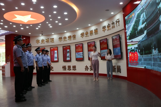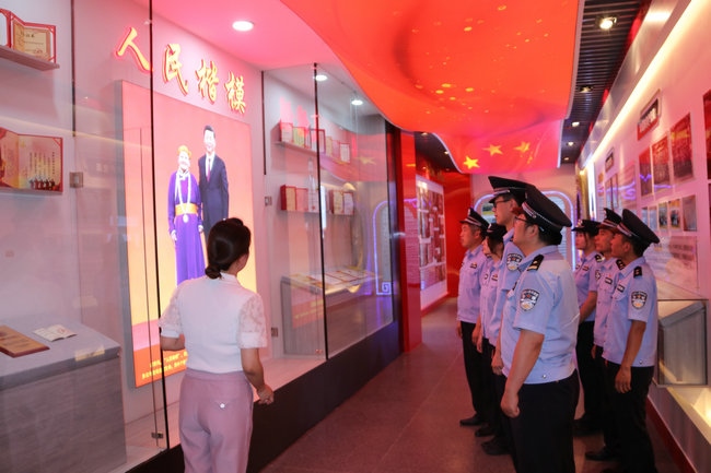 習(xí)近平新時(shí)代中國(guó)特色社會(huì)主義思想實(shí)踐基地由四子王旗委政府于2021年5月建成,總面積460平米,展廳內(nèi)展出圖片241張、文字展板34塊、視頻資料12個(gè),分黨史學(xué)習(xí)教育、都貴瑪先進(jìn)事跡、新時(shí)代文明實(shí)踐中心三個(gè)展廳,力圖打造成鞏固民族團(tuán)結(jié)大局、鑄牢中華民族共同體意識(shí)的紅色教育主陣地。在黨史學(xué)習(xí)教育展廳,全體黨員民警通過(guò)多媒體技術(shù),深入了解了黨的歷次代表大會(huì)主要內(nèi)容、我們黨理論探索的發(fā)展歷程和中國(guó)共產(chǎn)黨人的精神譜系以及習(xí)近平總書(shū)記對(duì)內(nèi)蒙古的重要囑托,重溫了習(xí)近平總書(shū)記“七一”重要講話精神,引導(dǎo)黨員民警牢記初心使命,時(shí)刻銘記黨性是黨員立身、立業(yè)、立德的基石。在都貴瑪先進(jìn)事跡展廳,大家通過(guò)視頻、照片、文字、連環(huán)畫(huà)等方式細(xì)致了解了“草原母親”都貴瑪養(yǎng)育28名孤兒和挽救40多位產(chǎn)婦的感人事跡,共同回憶了都貴瑪老人與邊防官兵、移民管理警察相處的點(diǎn)點(diǎn)滴滴。大家被都貴瑪老人身上“初心如炬 大愛(ài)無(wú)疆”的精神深深折服,深切感受到榜樣的力量。在新時(shí)代文明實(shí)踐中心展廳,大家還了解到駐地四子王旗新時(shí)代文明實(shí)踐工作的重要舉措和成果,通過(guò)對(duì)照人民楷模和道德模范,深入開(kāi)展深刻檢視,進(jìn)一步強(qiáng)化了黨員民警建設(shè)美麗邊疆、維護(hù)安全穩(wěn)定的信心決心。