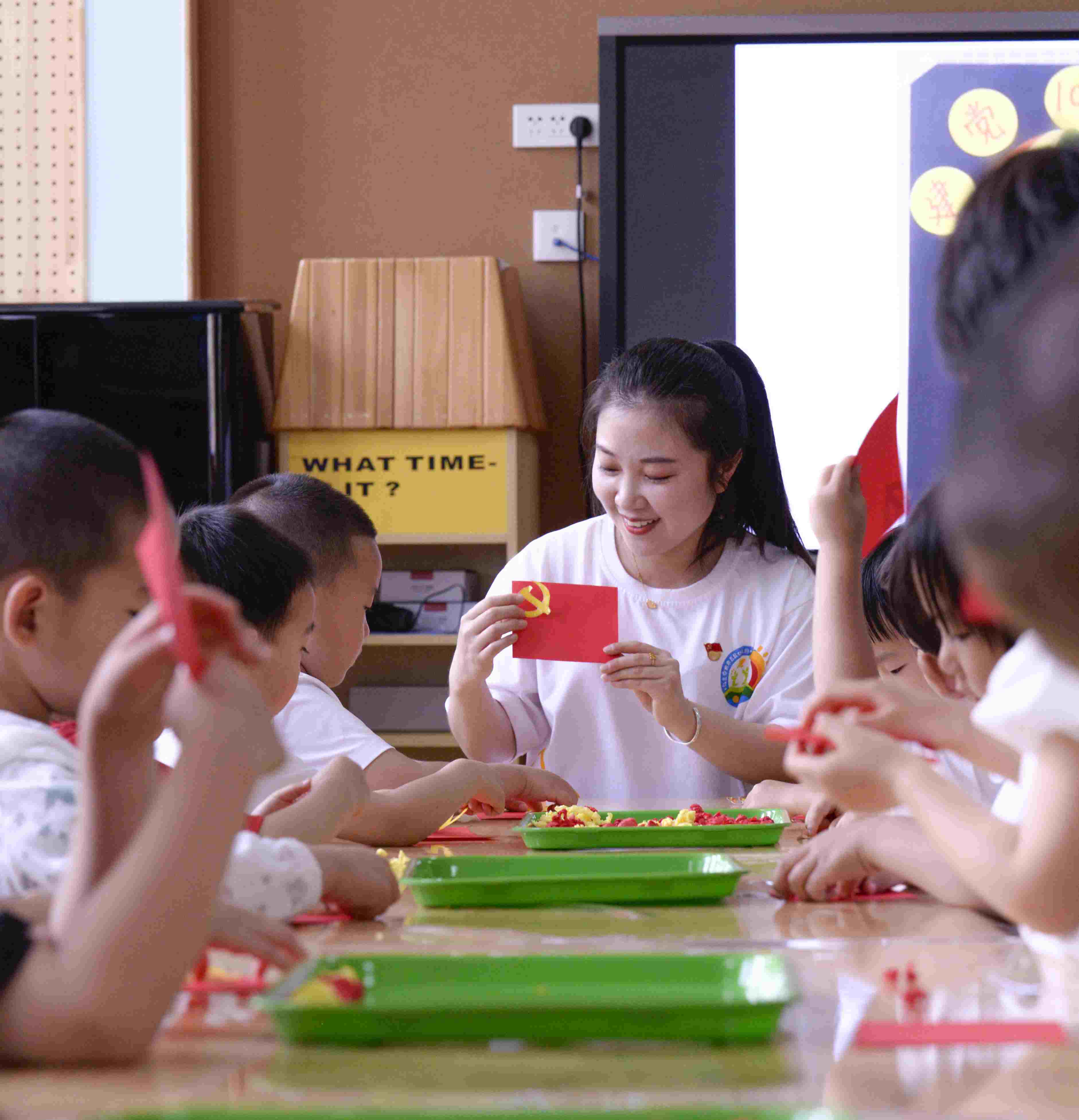 為喜迎黨的二十大勝利召開,近日,烏蘭察布市直屬幼兒園組織開展了紅色教育主題活動,厚植兒童愛黨愛國愛家的情懷。活動中,老師們用手工、舞蹈、互動問答等方式,引領(lǐng)孩子們認(rèn)識黨旗及黨旗的意義,了解關(guān)于建黨節(jié)的由來及其相關(guān)知識。競答環(huán)節(jié)上,小朋友們熱烈互動,踴躍發(fā)言,現(xiàn)場氣氛熱烈。此次活動讓孩子們進一步感受紅色精神,傳承紅色基因,激發(fā)了孩子們感恩共產(chǎn)黨、熱愛祖國的情懷。(唐璇博)