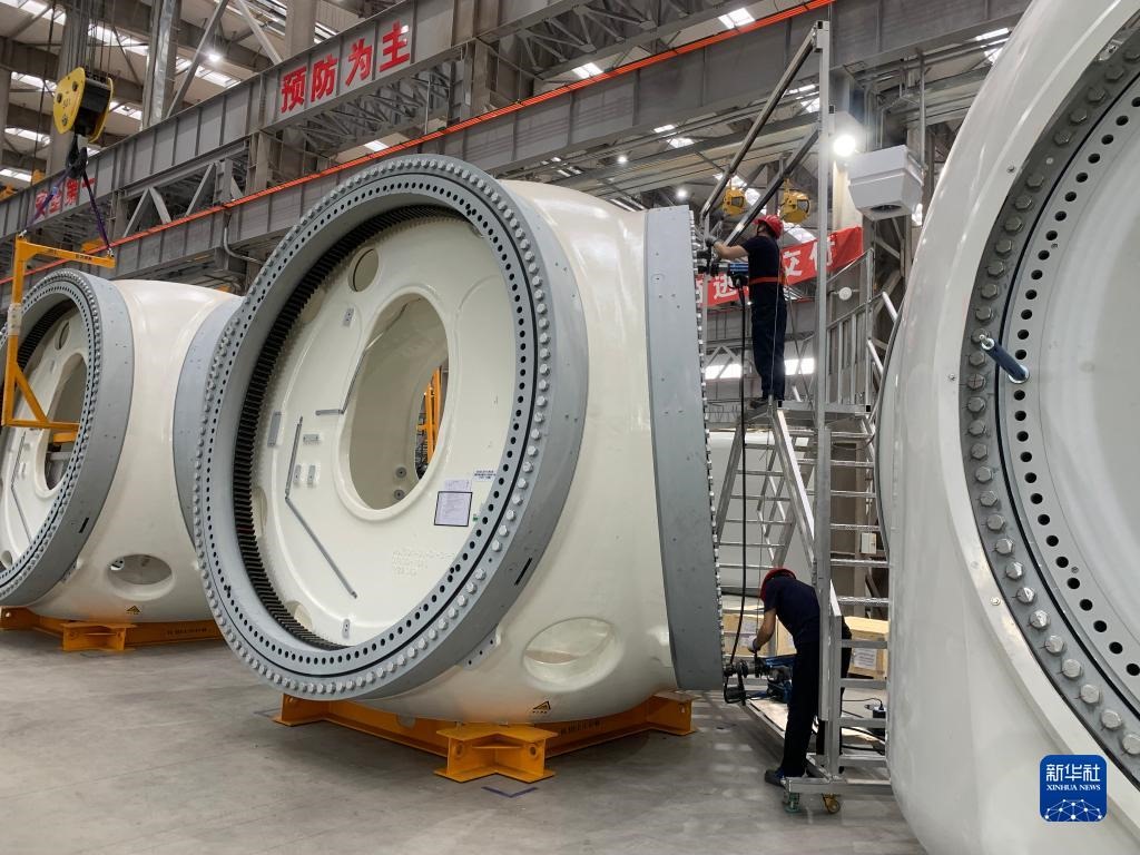 “公司2020年12月在烏蘭察布市注冊(cè)成立,今年5月中旬建成投產(chǎn),如今已具備每天生產(chǎn)2臺(tái)套風(fēng)機(jī)的生產(chǎn)能力。”在烏蘭察布運(yùn)達(dá)風(fēng)電有限公司的生產(chǎn)車間里,公司副總經(jīng)理常偉指著一臺(tái)正在組裝的風(fēng)機(jī)說,“我國(guó)風(fēng)機(jī)研發(fā)能力及技術(shù)水平正逐年向國(guó)際水平靠攏,曾經(jīng)風(fēng)機(jī)的單機(jī)容量只有750千瓦,目前我們車間里生產(chǎn)的風(fēng)機(jī)單機(jī)容量已超過6000千瓦。”