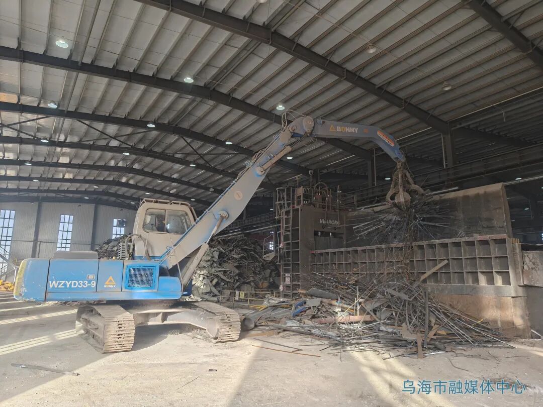 近日,記者來到位于烏海海勃灣高新技術(shù)產(chǎn)業(yè)開發(fā)區(qū)的內(nèi)蒙古萬斯通環(huán)保再生資源回收有限公司,走進(jìn)廢鋼車間,龍門剪、抓鋼機(jī)、電磁起重機(jī)等交叉作業(yè),機(jī)械轟鳴聲與金屬撞擊聲、破碎聲不絕于耳。
