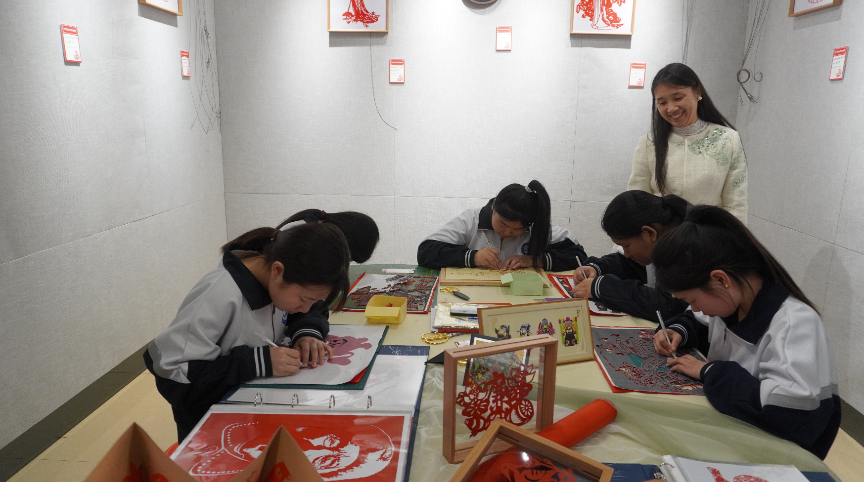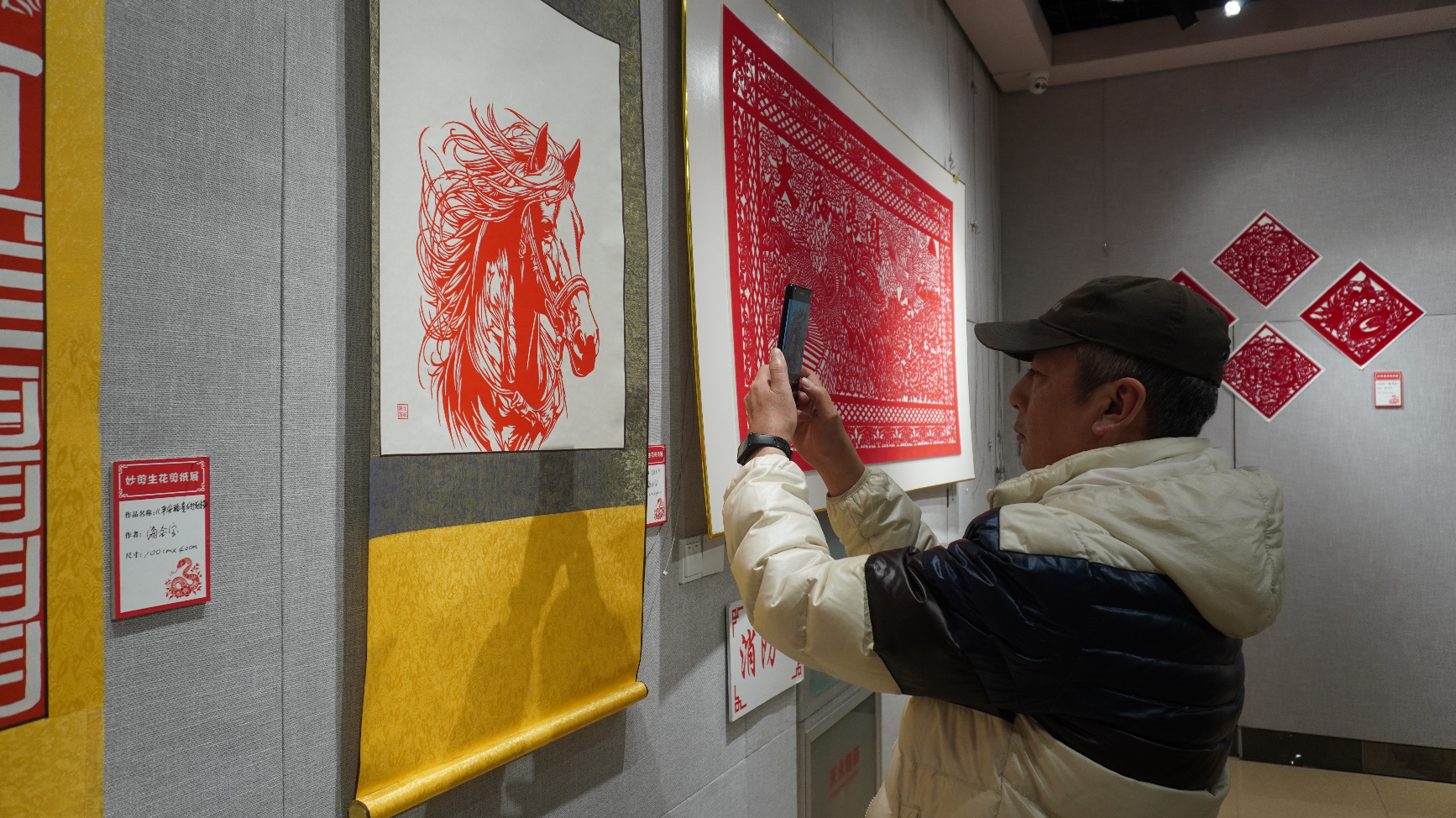 此次展覽的剪紙作品內(nèi)容豐富、制作精致、形式多樣,在傳承傳統(tǒng)剪紙藝術(shù)的同時(shí),注入了新時(shí)代的元素特征,以剪紙藝術(shù)詮釋烏蘭浩特市自然風(fēng)物、傳統(tǒng)建筑與歷史文化之美,展現(xiàn)出剪紙技藝在傳承與發(fā)展中的無限魅力。觀眾不僅可以近距離感受剪紙的藝術(shù)魅力,還可以參與剪紙,感受中國傳統(tǒng)文化的博大精深?! ?/p>