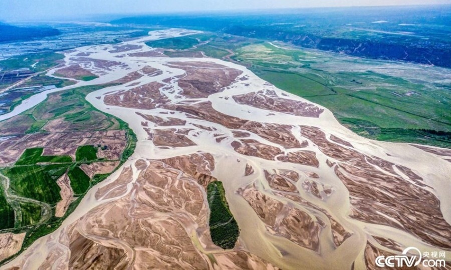 隨著黃河水位下降,山西運(yùn)城萬榮縣境內(nèi)的黃河河床大面積裸露,河水在主河道上分散成了無數(shù)條大小不等的細(xì)流,形成了黃河特有的景色。