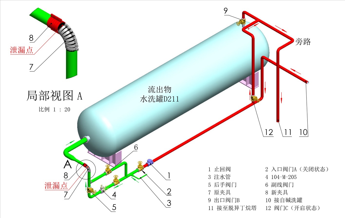 13時24分10秒,在新夾具兩側各安裝緊固1套螺栓時,原夾具水平端的管道焊縫處突然斷裂,大量介質從斷口噴出?,F場監(jiān)護人員立即向外疏散并安排烷基化裝置內操人員緊急停車。