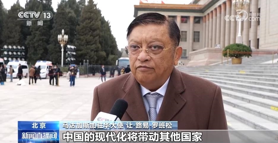 馬達(dá)加斯加駐華大使 讓·路易·羅班松:中國(guó)的現(xiàn)代化發(fā)展很好,中國(guó)的現(xiàn)代化將帶動(dòng)其他國(guó)家,尤其是發(fā)展中國(guó)家的現(xiàn)代化。中國(guó)有關(guān)世界和平的立場(chǎng)主張也會(huì)更加受到全世界的關(guān)注。