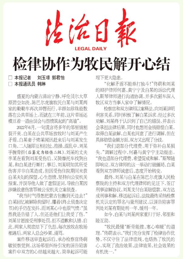 “牧民最懂‘斷骨能接,寒心難暖’的道理?!辟∶缺硎荆拔覀兂浞职l(fā)揮了檢律協(xié)作優(yōu)勢,不僅守住了法律底線,也焐熱了牧民的心,實現(xiàn)了政治效果、法律效果、社會效果的有機統(tǒng)一?!保?span style="text-align: justify;">作者 劉玉璟 郭君怡 韓琳)