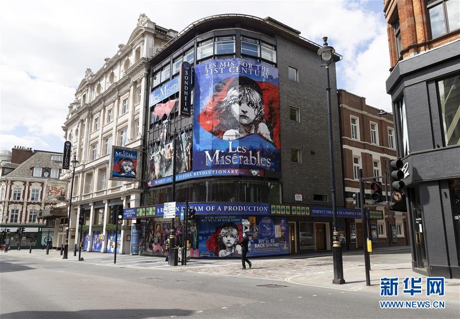 這是5月12日在英國倫敦西區(qū)拍攝的一家關(guān)閉的劇院。新華社記者韓巖攝