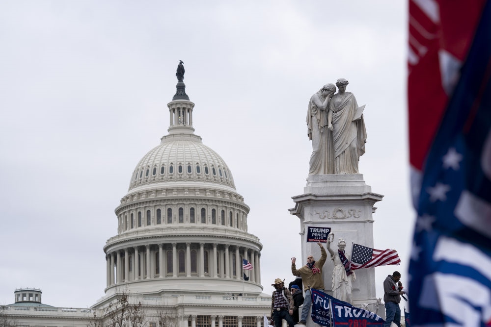 1月6日,在美國首都華盛頓,美國總統(tǒng)特朗普的支持者舉行示威游行。新華社記者劉杰攝