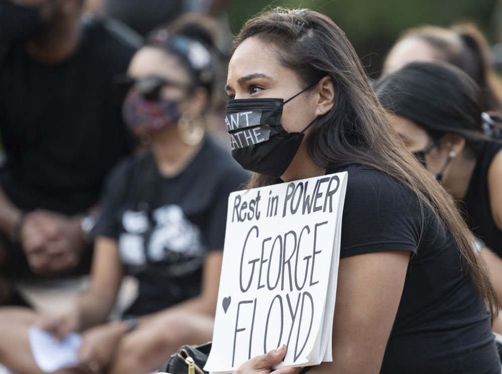5月25日,人們在美國華盛頓白宮附近參加悼念喬治·弗洛伊德的集會。當(dāng)日是非洲裔美國人弗洛伊德遭明尼蘇達(dá)州白人警察“跪頸”執(zhí)法致死一周年,美國多地舉行悼念活動。新華社記者劉杰攝