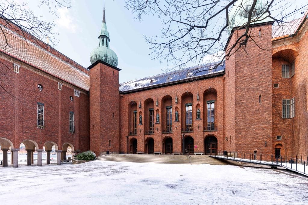 這是在瑞典首都斯德哥爾摩市政廳庭院內(nèi)拍攝的雪景。新華社發(fā)(魏學(xué)超攝)