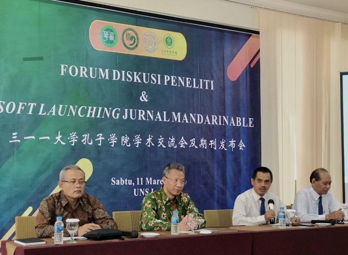 人民網(wǎng)雅加達3月12日電 (記者張杰)11日下午,三一一大學孔子學院學術期刊《Mandarianable》發(fā)布會及四周年生日會在梭羅隆重舉行。西華大學校長劉樹根、三一一大學學術事務副校長(尤努斯)Mr.Yunus教授、研究與創(chuàng)新副校長(坤卓落)Mr.Kuncoro教授、合作與信息副校長(夏啟丹)Mr. Sajidan教授、成都市政府代表潘文吉、張友東、羅會成、三一一大學部分院系代表等嘉賓出席了本次發(fā)布會。