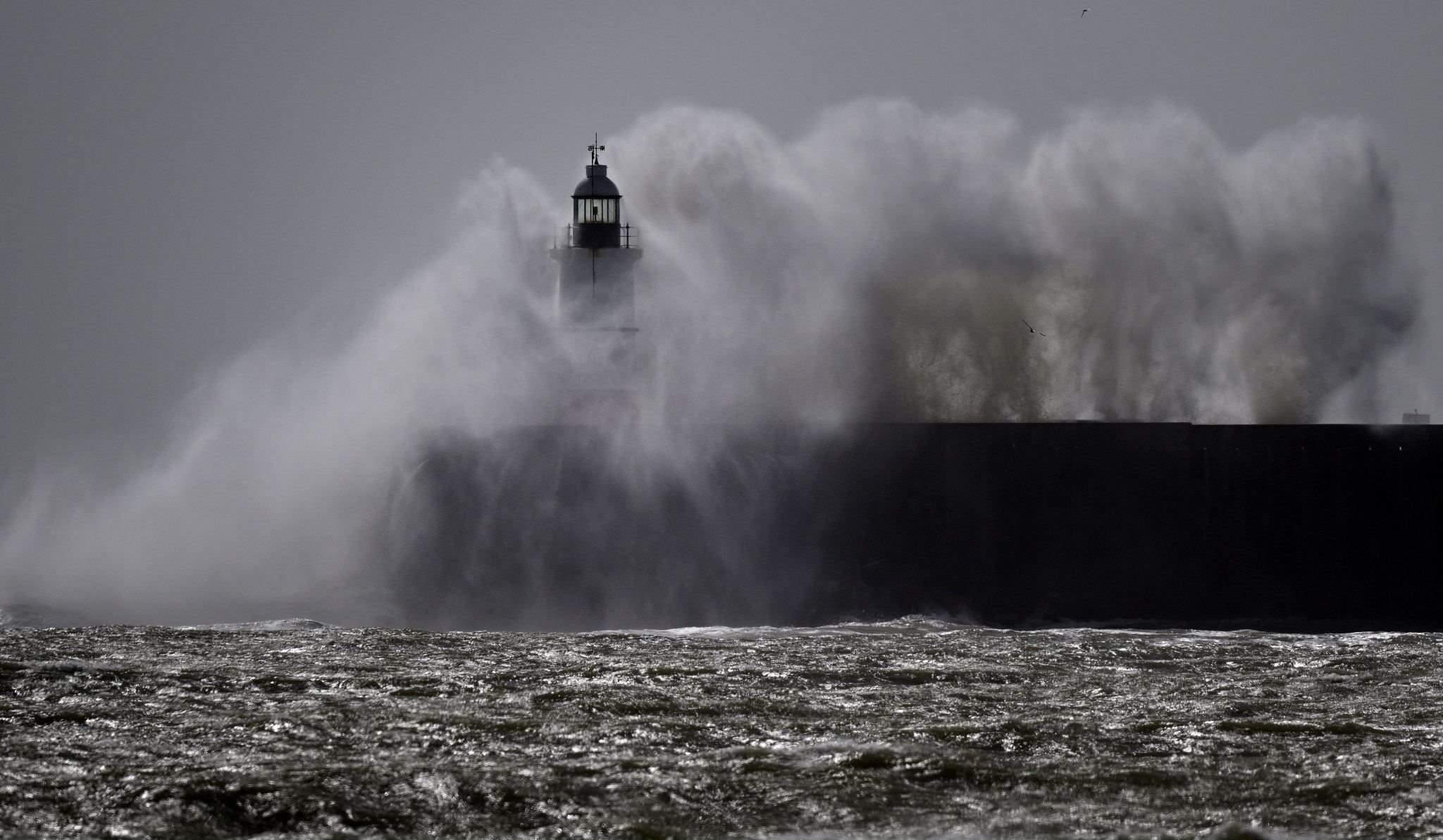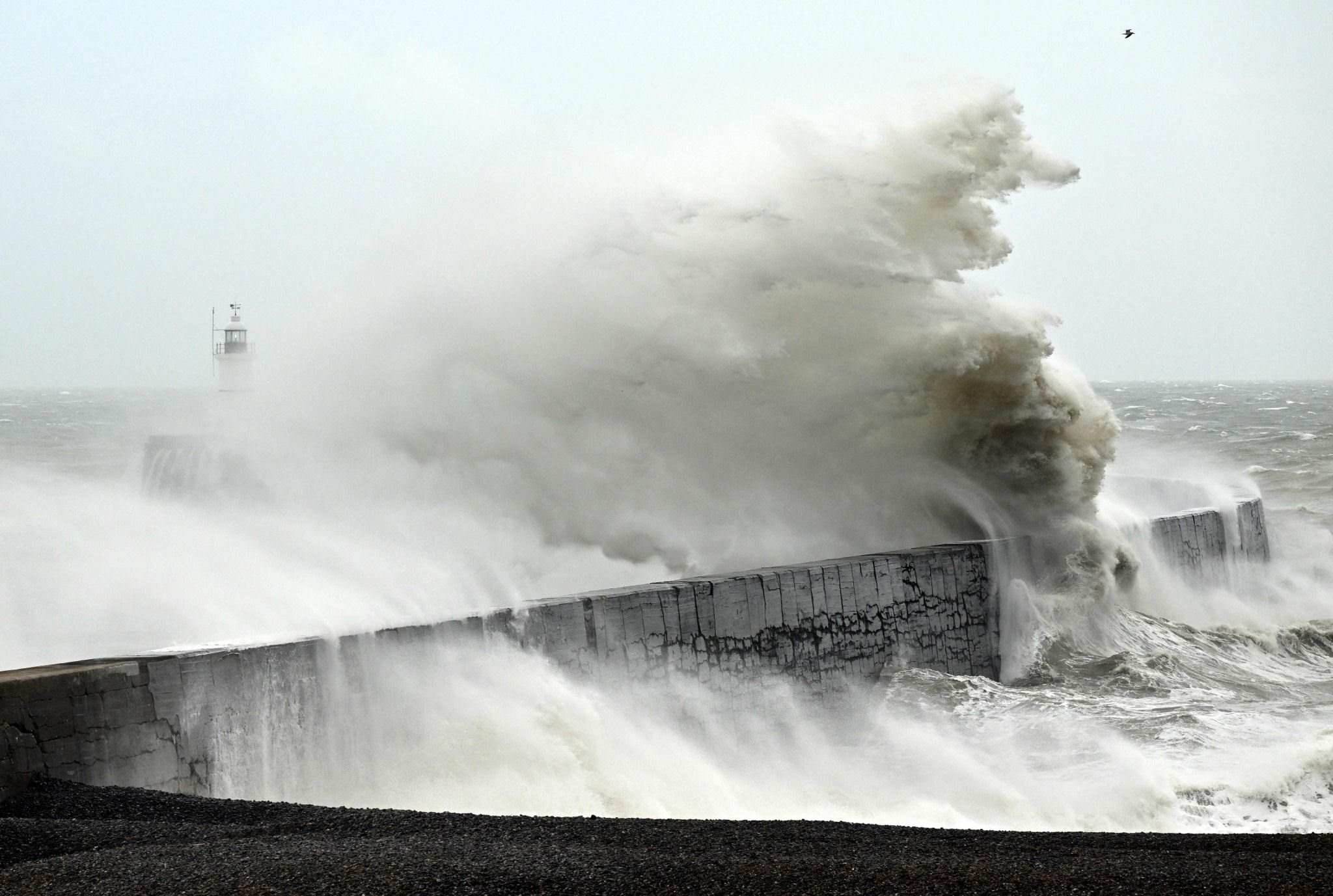 英國紐黑文:風暴來襲巨浪翻涌