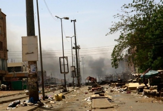 4月15日,蘇丹首都喀土穆響起激烈槍聲,間或可聽見炮聲。新華社發(fā)(穆罕默德·海德爾攝)
