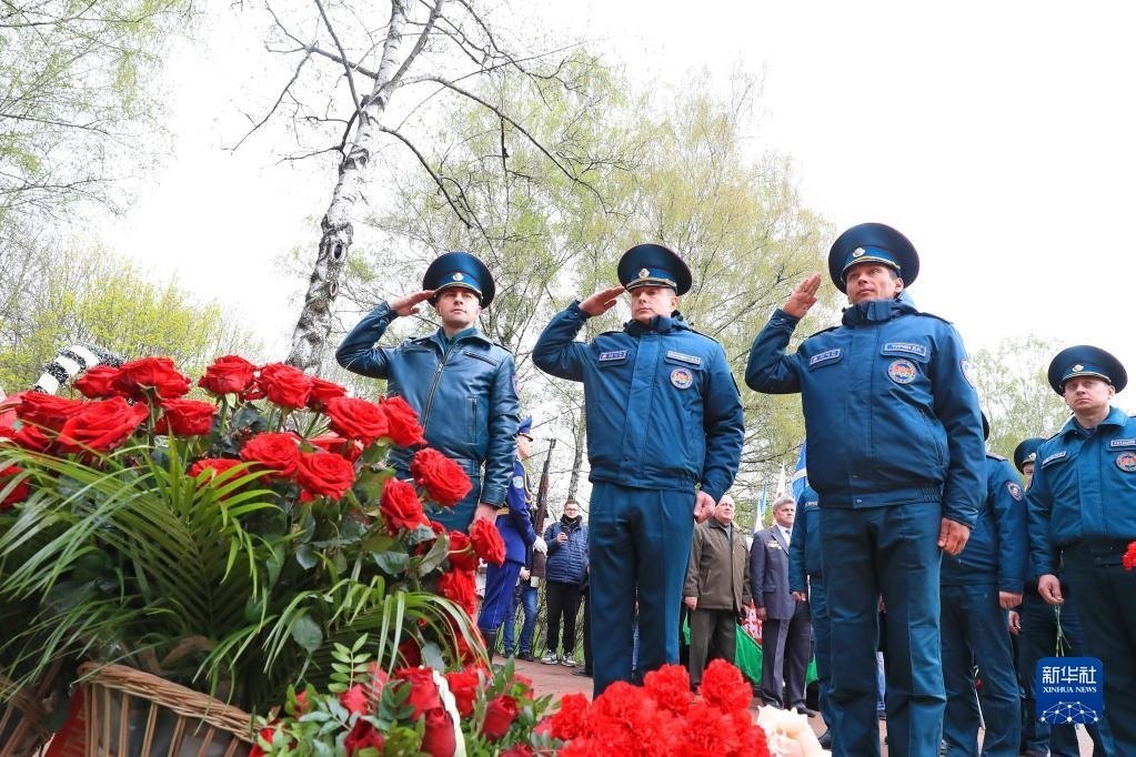 4月26日,白俄羅斯緊急情況部人員參加在白俄羅斯首都明斯克舉行的切爾諾貝利核事故37周年紀(jì)念活動(dòng)。