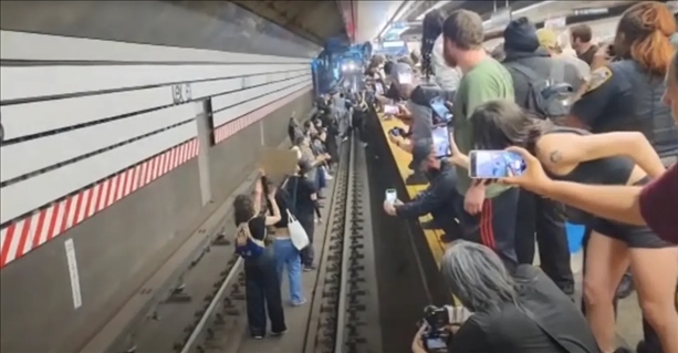 《紐約郵報(bào)》稱,視頻顯示,當(dāng)?shù)貢r(shí)間6日晚6時(shí)左右,在紐約市一地鐵站,多名抗議示威者跳入地鐵軌道,將迎面駛來(lái)的地鐵逼停??棺h者高呼“沒(méi)有正義,沒(méi)有和平”,而在背景聲音中,可以聽(tīng)到警察試圖呼吁維持秩序。這群示威者呼吁為尼利討回公道。這一危險(xiǎn)舉動(dòng)導(dǎo)致該地鐵站暫時(shí)停運(yùn)。