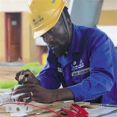 6年前,卡潘達成為中國水電培訓(xùn)學(xué)院的首批學(xué)生。學(xué)院依托下凱富峽水電站項目在當?shù)亻_辦,面向全贊比亞招生,旨在培養(yǎng)水電領(lǐng)域的急需人才。經(jīng)過6個月的“理論+實踐”培訓(xùn),卡潘達順利成為一名專業(yè)電工。此后,他又憑借優(yōu)異的業(yè)務(wù)表現(xiàn),獲得了前往中國進修的機會。