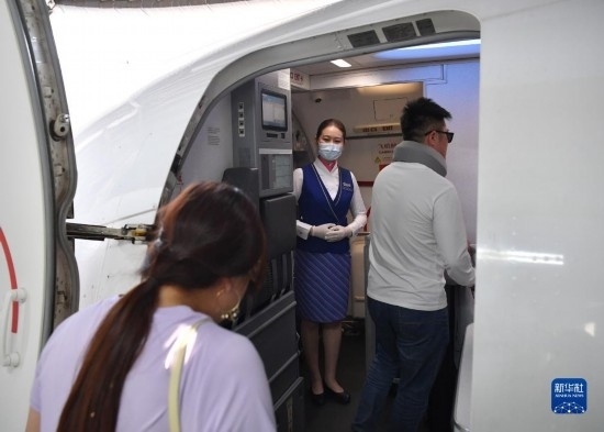 5月13日,旅客登上西安-烏魯木齊-阿什哈巴德首趟航班。