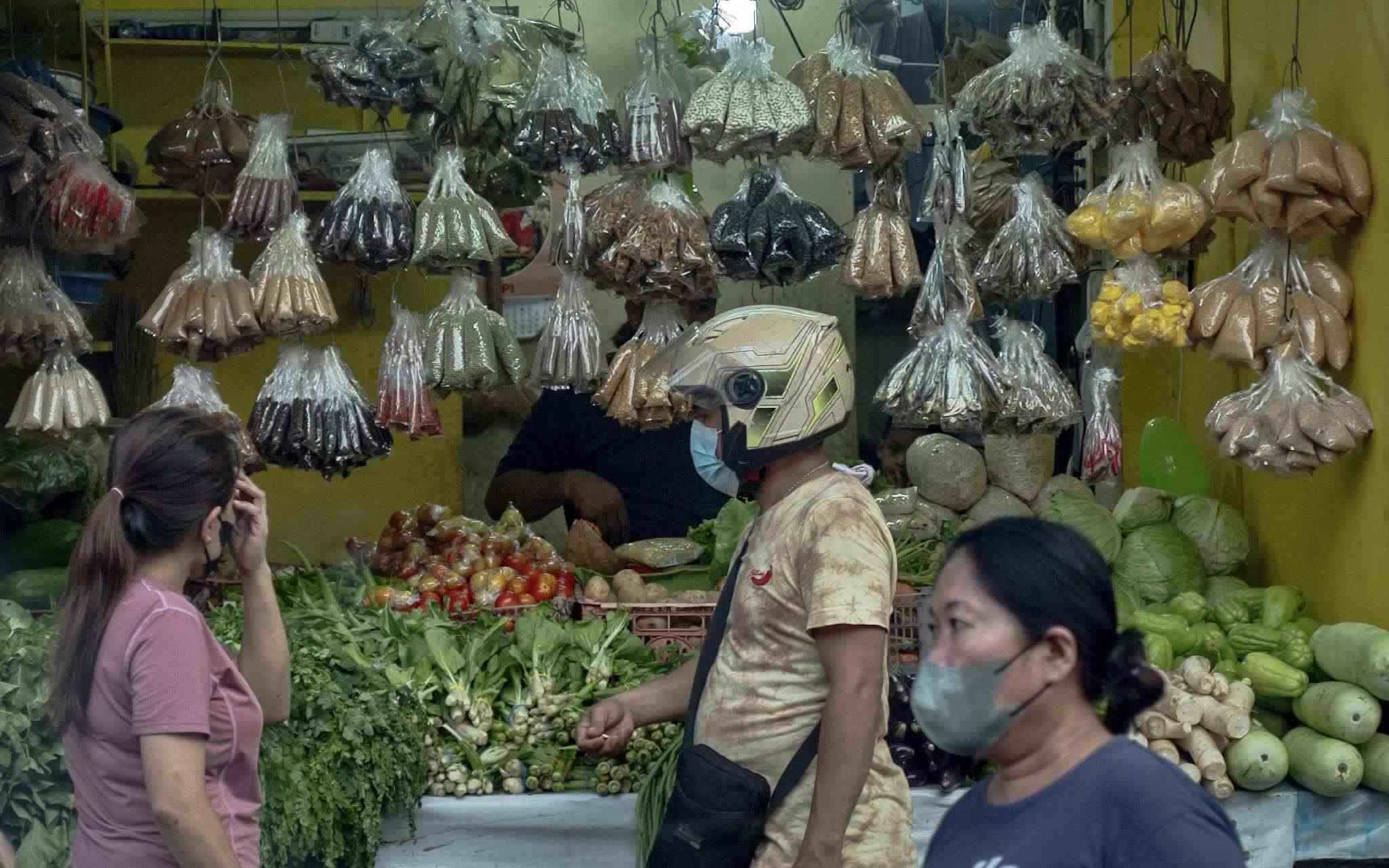 當(dāng)?shù)貢r(shí)間2023年4月19日,菲律賓馬尼拉,在奎松市的菜市場(chǎng),塑料包裝的不同商品在出售。