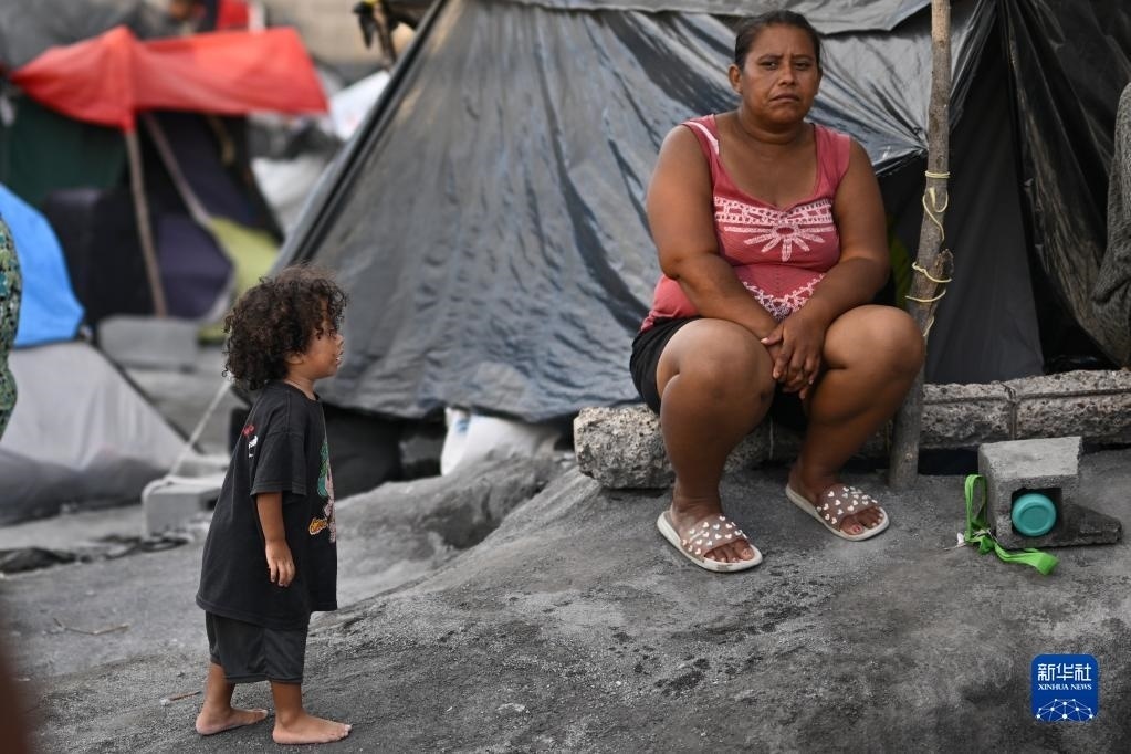 這是5月16日在美墨邊境城市墨西哥雷諾薩的一處收容所外拍攝的移民。
