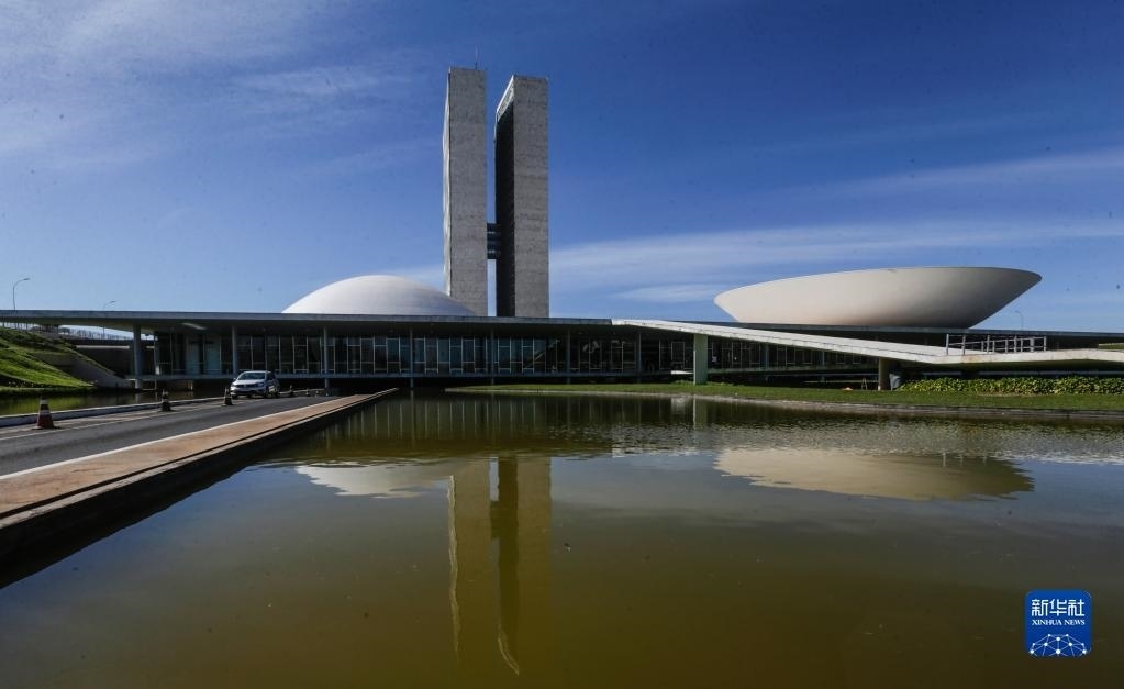 這是5月22日在巴西首都巴西利亞拍攝的巴西國(guó)會(huì)大廈。