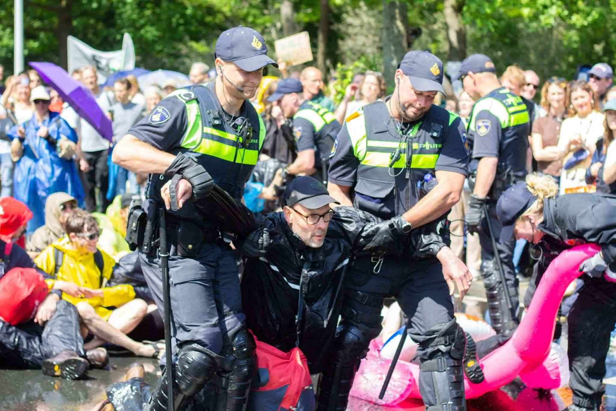 當(dāng)?shù)貢r(shí)間2023年5月27日,荷蘭海牙,警察在封鎖A12高速公路的抗議活動(dòng)中驅(qū)逐“反抗滅絕”活動(dòng)人士,他們反對荷蘭政府提供的化石燃料補(bǔ)貼。