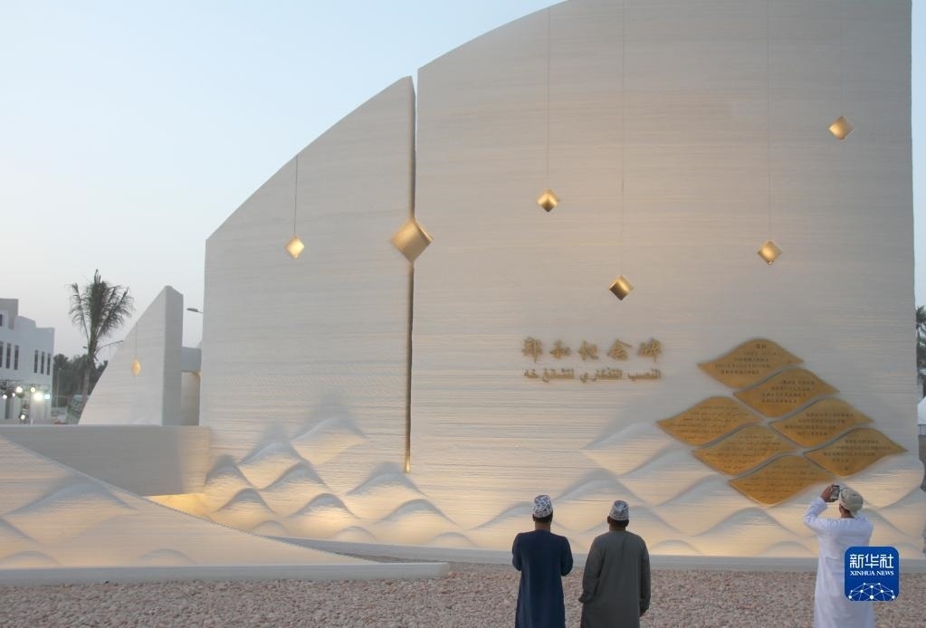 中國駐阿曼大使館5月30日在阿曼第二大城市塞拉萊舉行鄭和碑竣工儀式。鄭和碑主體造型取自海浪與船頭,用靈動的曲線還原鄭和船隊乘風破浪的場景。鄭和碑選址在佐法爾省政府打造的國家級濱海傳統(tǒng)文化、旅游與商務區(qū)內(nèi)的核心地帶。