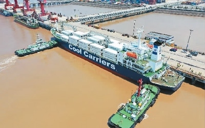 去年以來,浙江省玉環(huán)市持續(xù)加強對港口企業(yè)的引導(dǎo)力度,拓展大麥嶼港與東南亞國家、RCEP國家的合作。圖為一艘滿載6245噸新季獼猴桃的新西蘭貨輪停泊在大麥嶼港集裝箱碼頭,該航線是大麥嶼港于去年成功開通的RCEP國家水果進(jìn)口航線,實現(xiàn)了入境水果業(yè)務(wù)零的突破。段俊利攝(人民視覺)